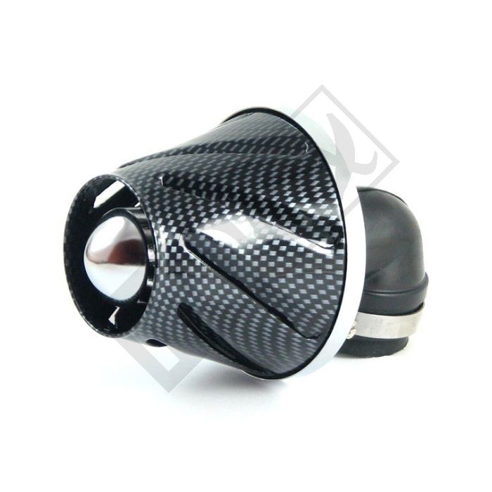 Luftfilter/Powerfilter offener universeller Helix 28/35 mm Vergaseranschluss im 90-Grad-Winkel aus Carbon