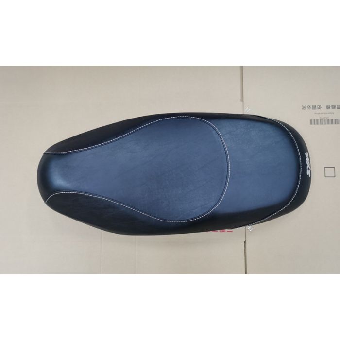 Schwarzer Sattel mit weißen Sym-Originalnähten.