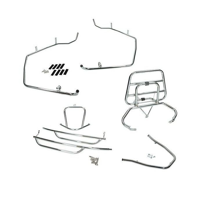 De naam zegt het eigenlijk al een sierbeugelset voor de Sym Fiddle. Ook helpen de beugels bij het eventueel omvallen van de scooter om kap schade te beperken! De Dmp beugels zullen de klap bij een val als eerste opvangen! De 4-delige chromen sierbeugelset voor de Sym Fiddle bestaat uit: - voorvalbeugels - voorspatbordbeugel - achtervalbeugels - klapdrager achter - bevestigingsmateriaalMontage Sierbeugel set fiddle chroom DMP 4-delig
