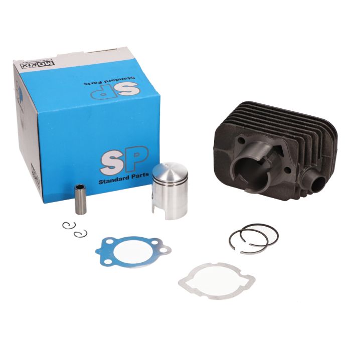 • Größe: 38,2 mm • 50 cm³ Hubraum • Material: Gusseisen • Luftgekühlter Wechselstrom • Kolbenbolzen 12 mm • 22 mm Auspufföffnung Dieser Zylinder wird mit Kolben und Dichtungssatz geliefert. An diesem Zylinder können Sie den originalen Zylinderkopf montieren.SP